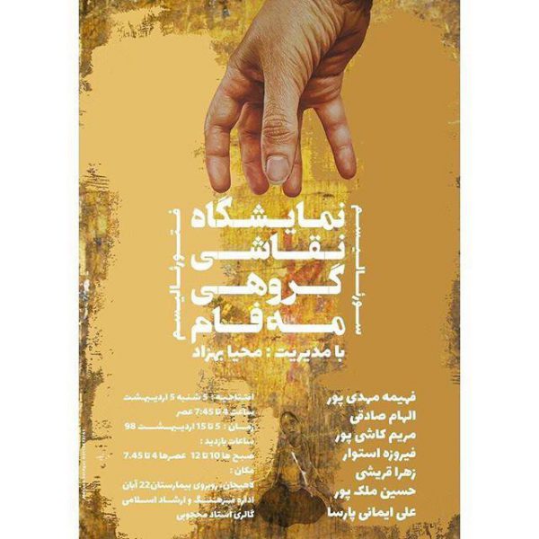 به گزارش روابط عمومی اداره فرهنگ و ارشاد اسلامی شهرستان لاهیجان، دومین نمایشگاه گروهی نقاشی کاری از هنرجویان آموزشگاه هنرهای تجسمی «مه فام » به مدیریت محیا بهزاد از تاریخ ٥ لغایت ١٥ اردیبهشت در نگار خانه اداره فرهنگ و ارشاد اسلامی لاهیجان برپا می باشد.